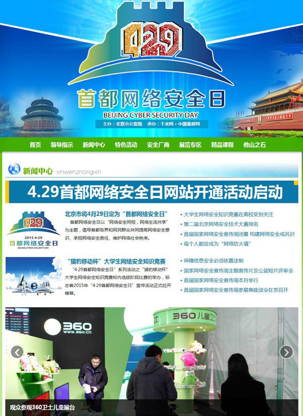 “4.29首都网络安全日”官方网站由“领导指示、新闻中心、特色活动、科技前沿、展览分区、精品课程和他山之石”等版块组成,将及时向参会人员和广大网友提供关于首都网络安全日活动的各种权威消息、最新报道和服务信息。(来源:千龙网)